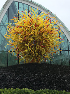 The next day we decided to check out the Chihuly Garden and Glass near the Space Needle. Cos we've done the Space Needle and the MoPOP (formerly the EMP, Experience Music Project and Science Fiction Museum) a bunch of times. Well we've done EMP a bunch of times. Anyway, we wanted to see something new and glass art is pretty.